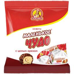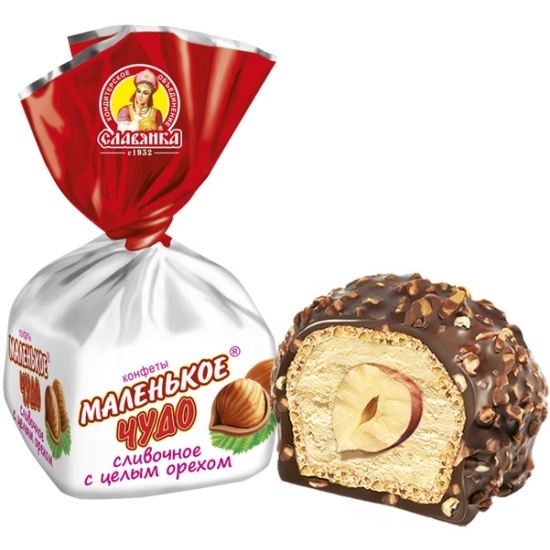 Конфеты СЛАВЯНКА Маленькое чудо сливочное 206 гВафельная конфета с нежной кремовой начинкой, цельным фундуком, посыпанная дроблёным арахисом и покрытая шоколадной глазурью