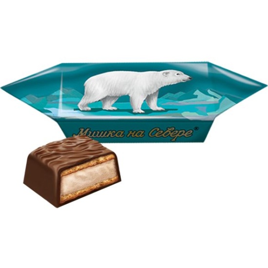Конфеты Ф.КРУПСКОЙ Мишка на Севере 200 гЛегендарные глазированные конфеты с начинкой на основе растёртых с сахаром ядер миндаля между слоями вафель