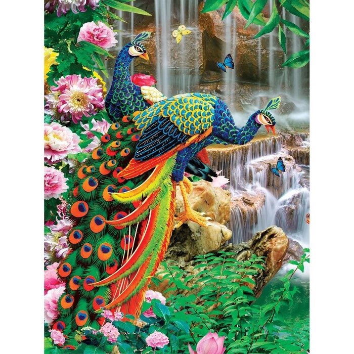 Алмазная вышивка на раме 30x40 с частичным заполнением "Павлины"