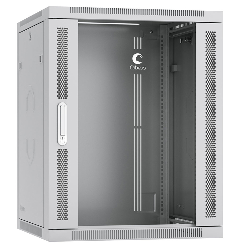 Настенный шкаф Cabeus - SH-05F разобранный, 15U, глубина-450мм, ширина-600мм, Стеклянная дверь, Съемные стенки, max-60кг, IP20, цвет Серый, SH-05F-15U60/45-R
