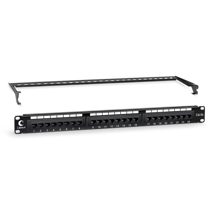 Патч-панель Cabeus, 24-ports, кат. 6A, UTP, RJ-45, IDC Dual, 1U, цвет чёрный, PL-24-Cat.6a-Dual