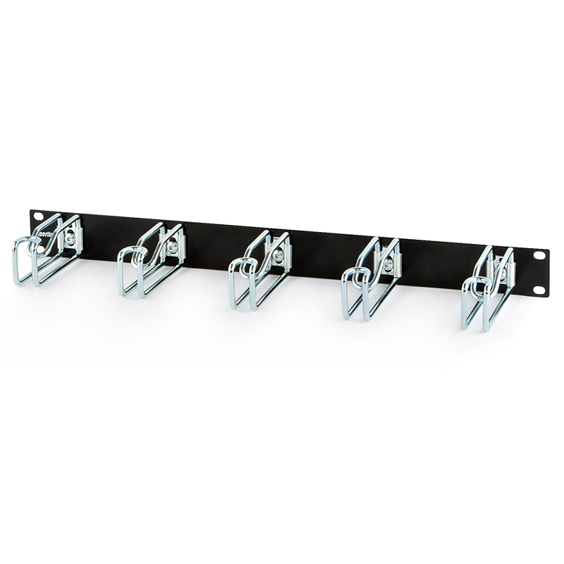 Кабельный органайзер Hyperline - с металлическими кольцами, Горизонтальный, 1U, 5 колец, цвет Чёрный, CMW-1U-02-BK