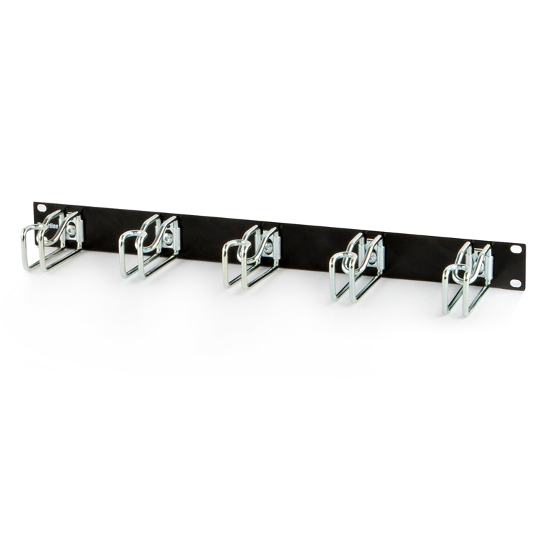 Кабельный органайзер Hyperline - с металлическими кольцами, Горизонтальный, 1U, 5 колец, цвет Чёрный, CMW-1U-01-BK