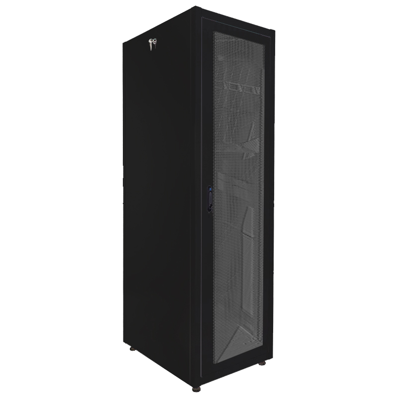 Напольный шкаф ЦМО - ШТК-ЭКОНОМ, 42U, высота-1989мм, глубина-800мм, ширина-598мм, Перфорированная дверь, Съемные стенки, max-710кг, полезная глубина-715мм, IP20, цвет Чёрный, ШТК-Э-42.6.8-44АА-9005