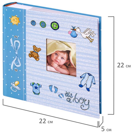 Фотоальбом BRAUBERG "It's a boy" на 200 фото 10х15 см, твердая обложка, бумажные страницы, бокс, голубойФотоальбом BRAUBERG станет настоящей коллекцией памятных дат и событий, а также отличным подарком.Состоит из 50 бумажных листов размером 15,5х21 см с карманами и вмещает 200 фотографий размером 10х15 см, по 2 штуки на странице. Обложка фотоальбома выполнена в детском стиле, в голубых тонах и декорирована рамкой для фотографии, которую можно заменить по желанию владельца. Фотоальбом с книжным переплетом отличается повышенной прочностью и долгим сроком службы. Имеются поля для подписей. Размер альбома - 22х22 смТип листов: бумажные листы с карманамиМакс. количество фотографий: 200 штРазмер фотографий: 10х15 смТип обложки: твердаяОбложка с рамкой для фото: даБазовый цвет обложки: голубойКоличество листов: 50 штРазмер листа: 15,5х21 смКрепление страниц: книжный переплетЦвет страниц: белыйПоля для подписей: даВысота альбома: 22 смШирина альбома: 22 смШирина корешка: 5 см