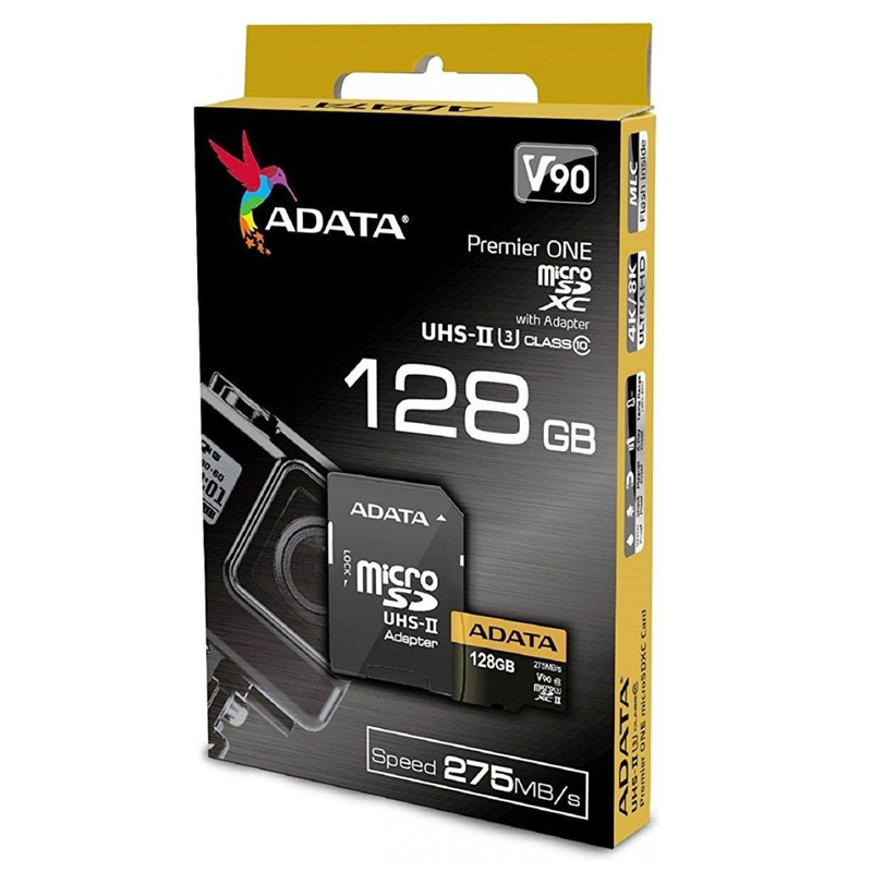 Карта памяти ADATA - Premier ONE, microSDXC, write speed 155Mb/s, read speed 275Mb/s, UHS-II Class 3, V90, Class 10, 128GB, AUSDX128GUII3CL10-CA1