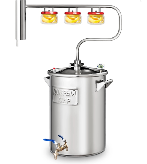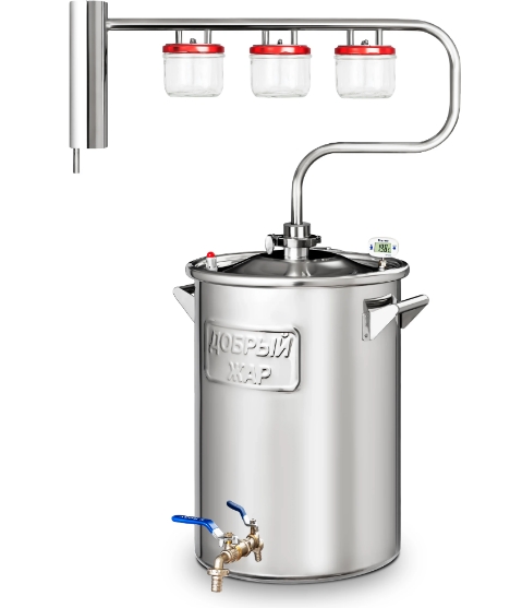 Добрый Жар Луч 40 литров - надежное оборудование для приготовления крафтовых спиртных напитков. Его особенность - одновременная ароматизация продукта по ходу процесса перегонки. Перегонный куб агрегата имеет ферромагнитное дно, поэтому может размещаться на плитах разного типа.