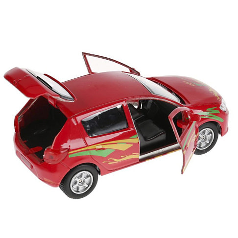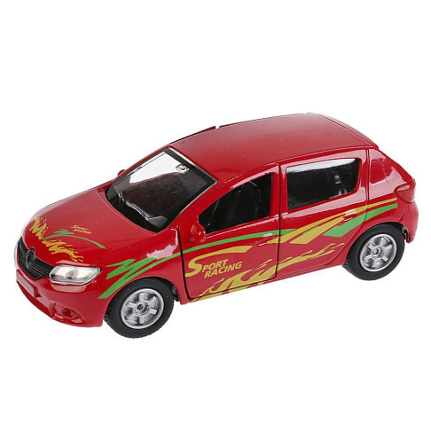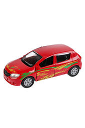 Это замечательная машинка – точная копия автомобиля Renault Sandero. Игрушка хорошо проработана и детализирована, оснащена инерционным механизмом. Колеса вращаются, дверцы и багажник открываются и закрываются.