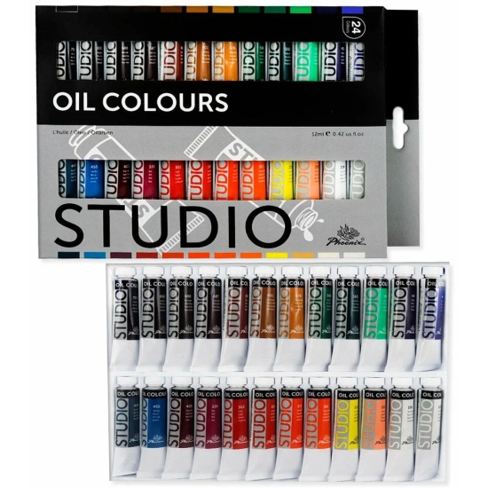Набор масляных красок для рисования Phoenix СТУДИО 24 цвета в тубах по 12млПрофессиональные масляные краски Phoenix STUDIO изготовлены из тщательно отобранных высококачественных тонкотёртых пигментов и льняного масла тонкой очистки, характеризуются высокой концентрацией пигмента для максимально ярких и светостойких красок. Краски разработаны техническими специалистами из Британии, согласно современным формулам и самой совершенной технологии производства. Масляные краски Phoenix STUDIO являются лучшими в нескольких аспектах: светостойкость, насыщенность оттенка, стабильность покрытия и химическая стойкость пигмента. Каждый цвет индивидуально разработан для наилучшего цветового оттенка и стабильности цвета. Весь спектр цветов отличается чистотой оттенка и хорошим смешиванием, что делает эти краски лучшим выбором как для начинающих, так и для профессиональных художников.В набор входит необходимая гамма цветов.