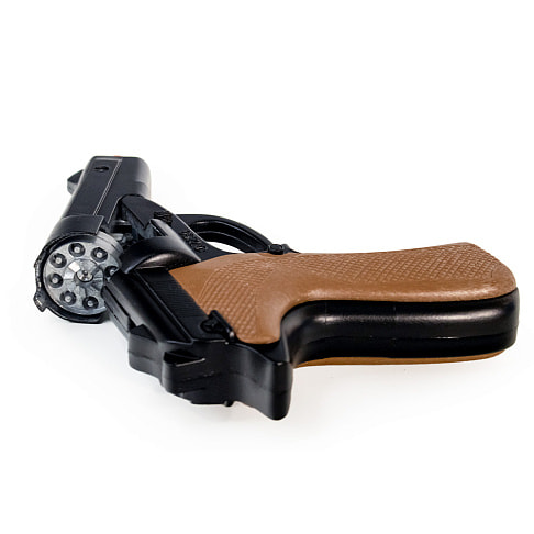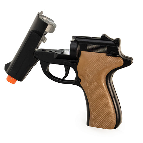 Металлический пистолет станет любимой игрушкой в руках молодого стрелка! Пистолет заряжается 8-и зарядными пистонами. Выстрел оснащен звуковым эффектом на уровне хлопка, а по стволу пробегает дым создавая нужную атмосферу в игровой обстановке.