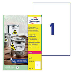 ОсобенностиПрочные белые водостойкие этикетки из полиэстера, размер 210х 297 мм, для печати на лазерных принтерах. 100лстов. Благодаря сильному клеевому составу этикетки предназначены для надежной и прочной маркировки на улице или в складских помещениях.