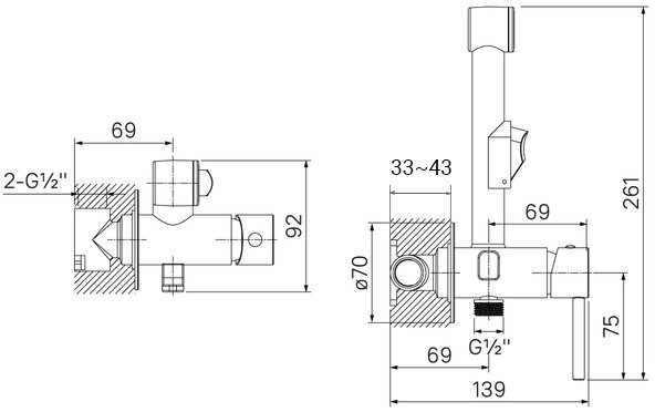 Смеситель скрытого монтажа с гигиеническим душем Iddis 003WTR0i08