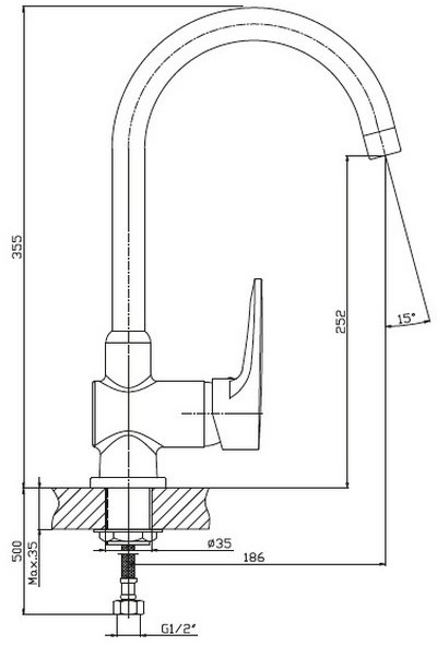 Высота излива: 252 мм