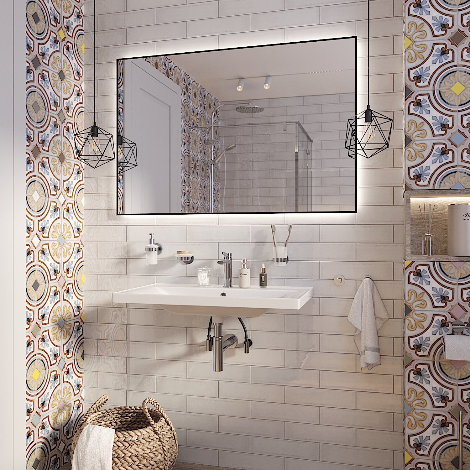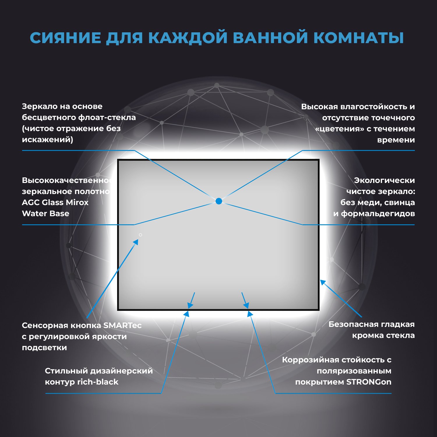 Зеркало прямоугольное Wellsee 7 Rays' Spectrum с фоновой LED-подсветкой 172201090 120x80 см черный контур