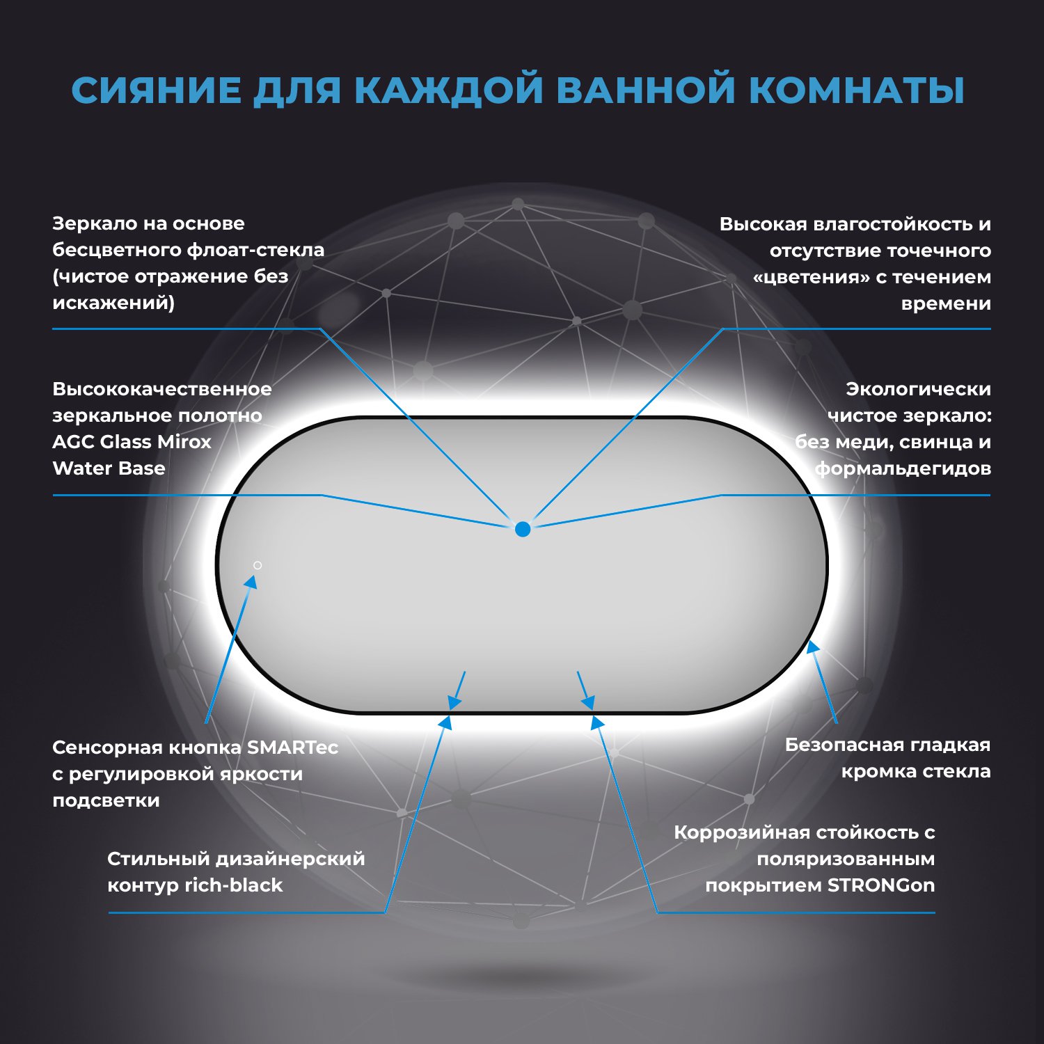 Овальное зеркало Wellsee 7 Rays' Spectrum с фоновой LED-подсветкой 172201550 100x55 см черный контур