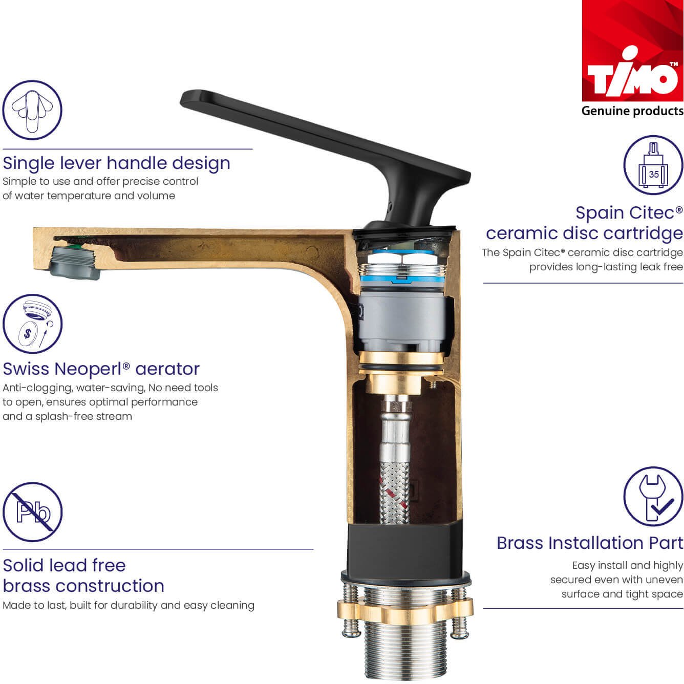 смеситель для умывальника c гигиеническим душем timo torne 4360/03g черный