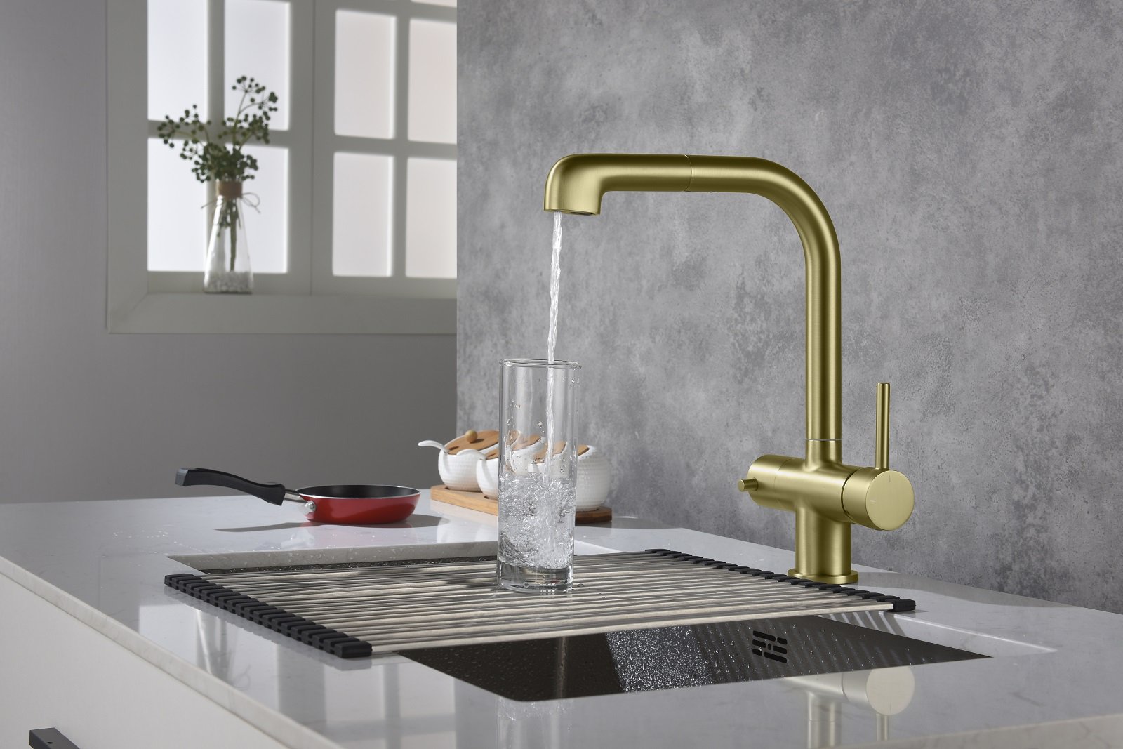 Смеситель для кухни Timo Saona 2346/17FL матовое золото с выдвижной лейкой и подключением фильтра для воды