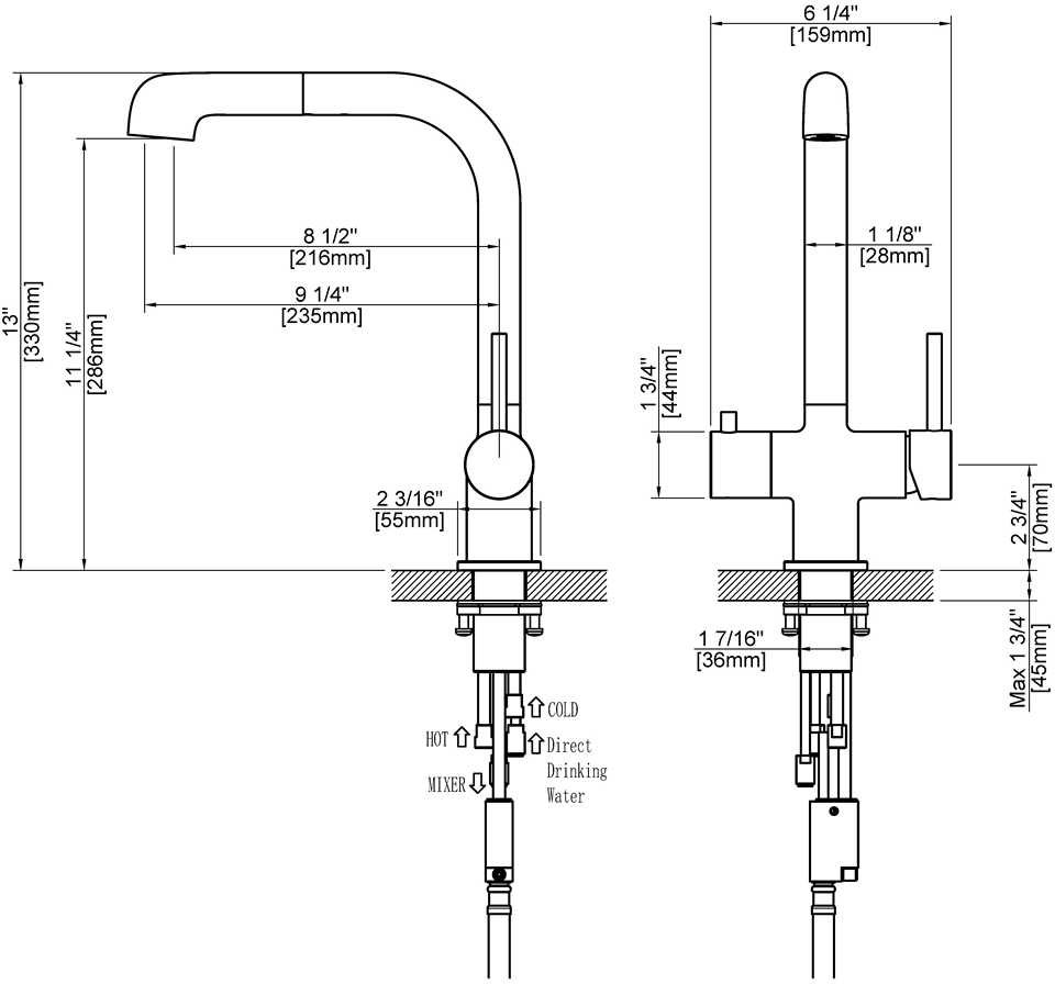 Высота излива воды - 198 мм