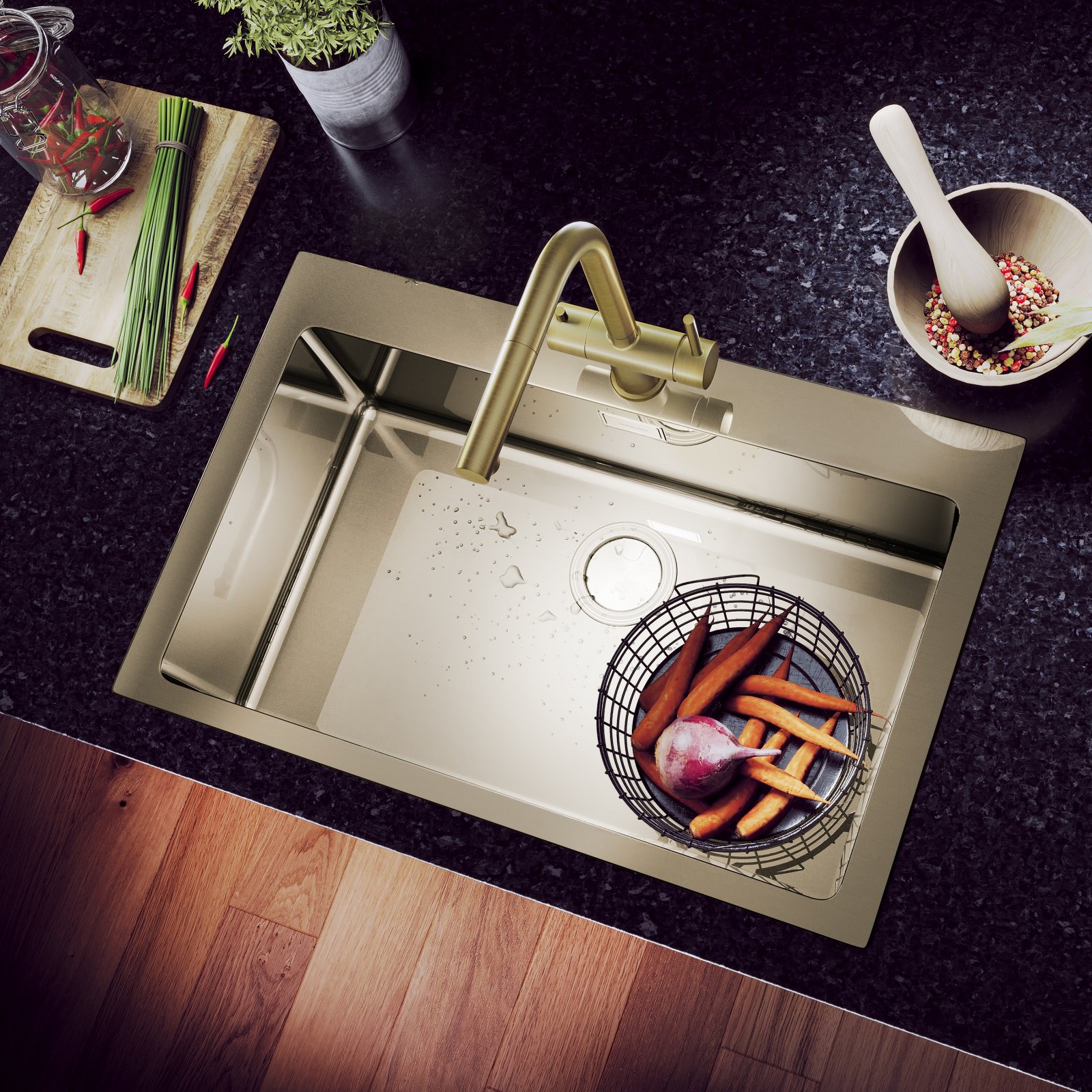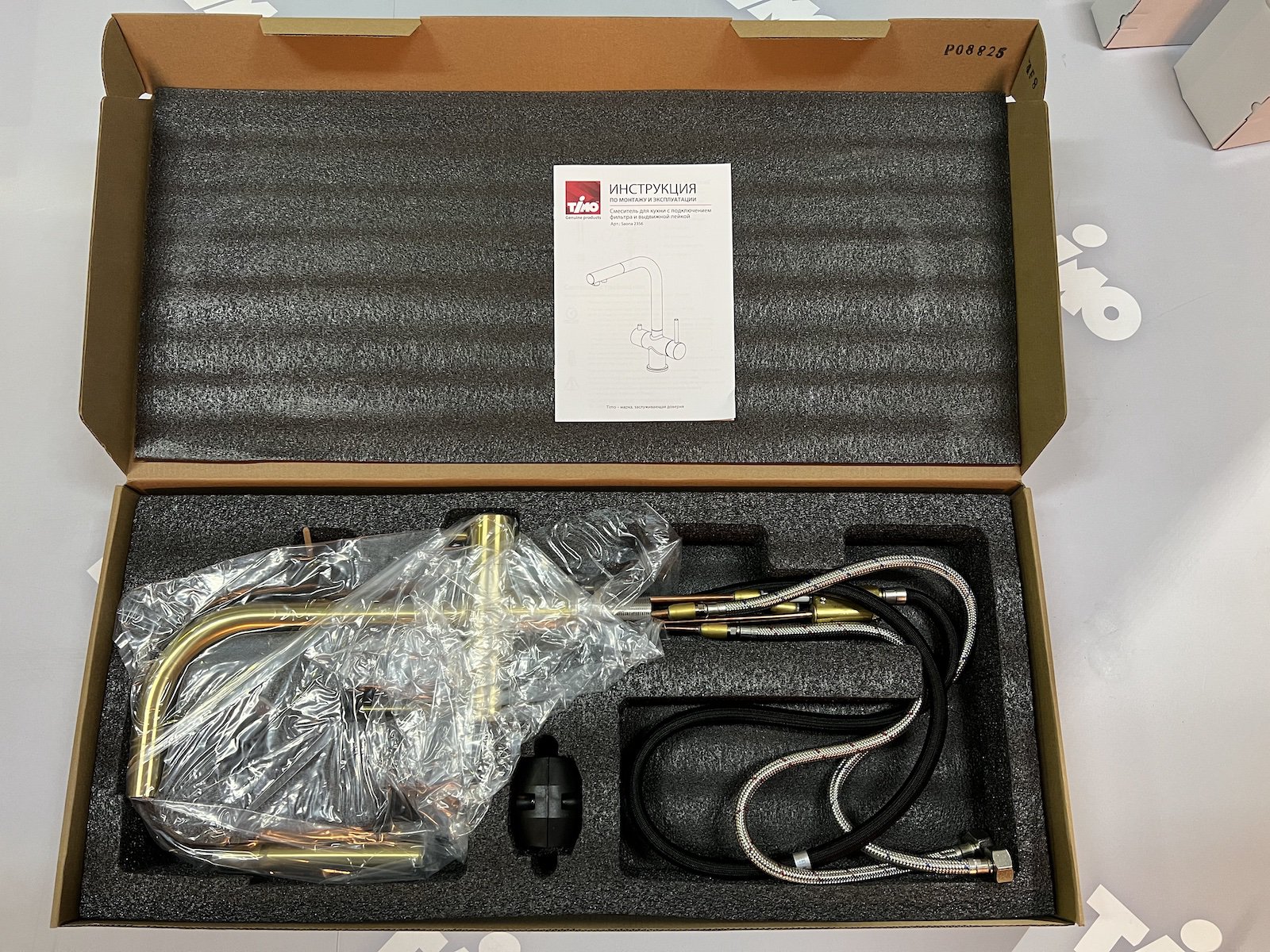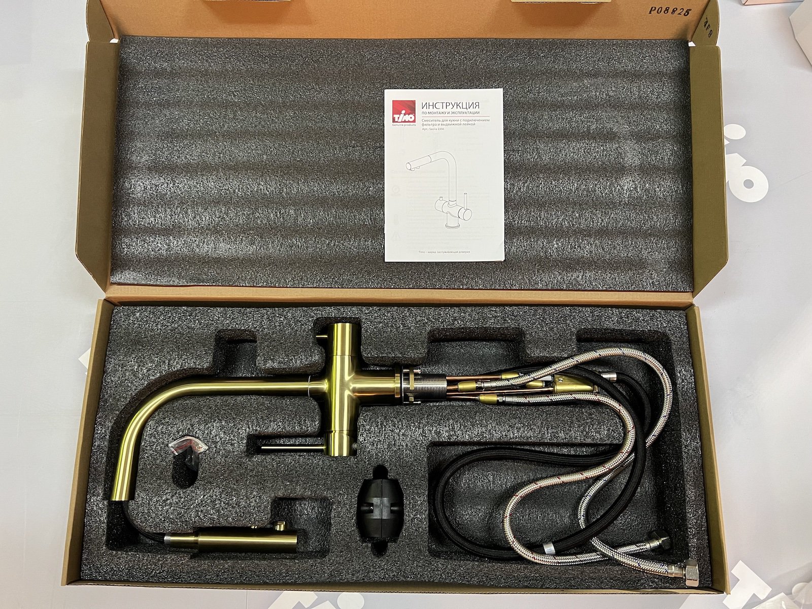 смеситель для кухни timo saona 2356/17fl матовое золото с выдвижной лейкой и подключением фильтра для воды