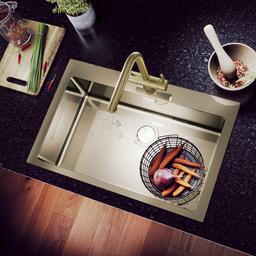 Смеситель для кухни Timo Saona 2356/17FL матовое золото с выдвижной лейкой и подключением фильтра для воды