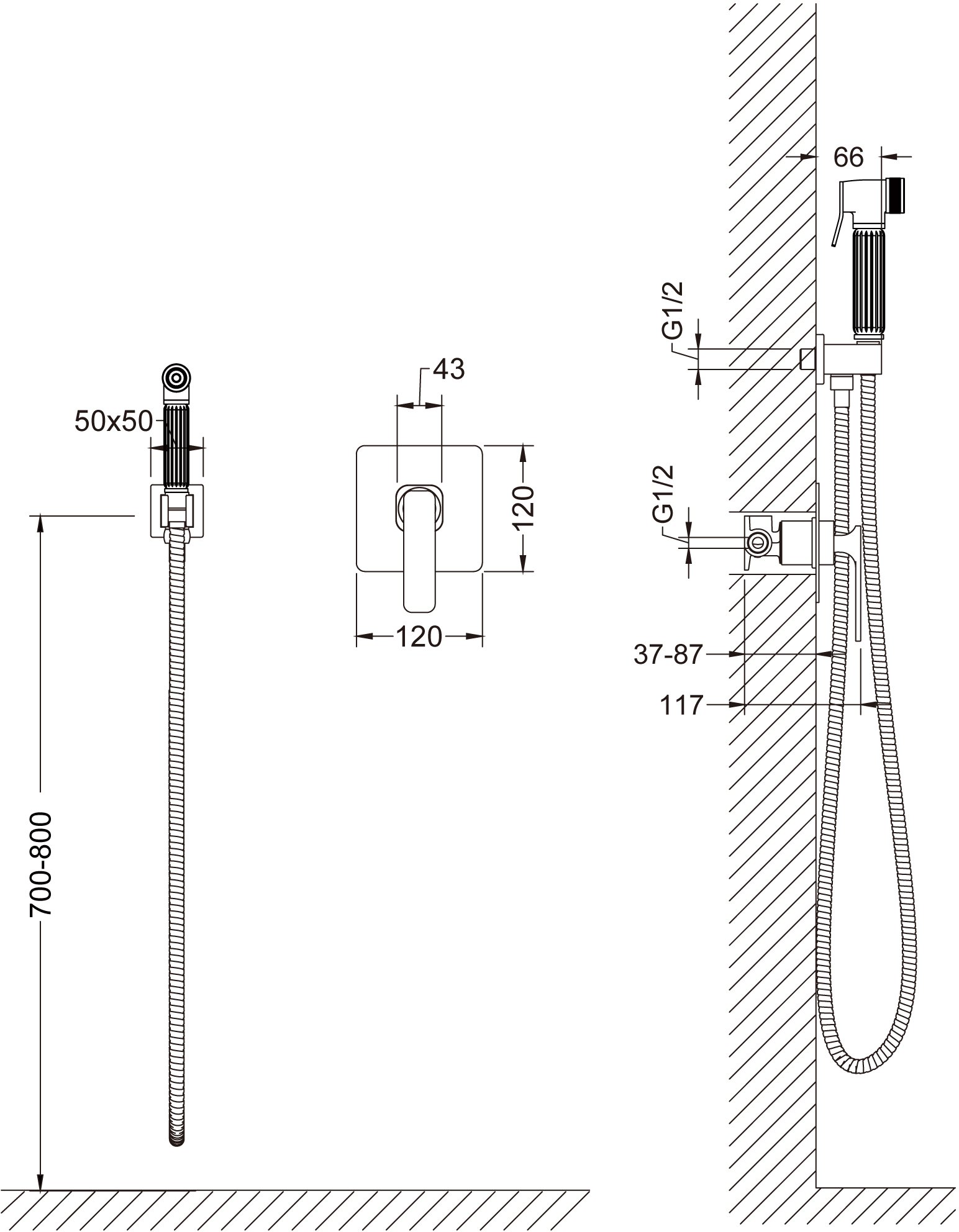 Держатель лейки с подключением шланга ( латунь )