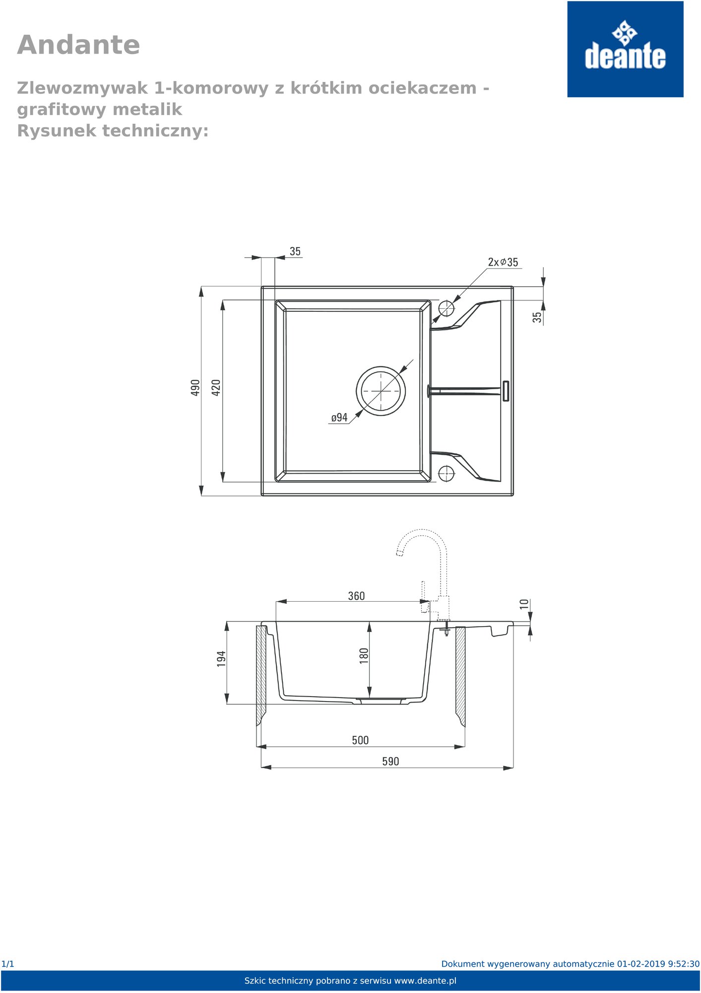 Деанте Антчзак Сп, Ал.Кошчуцки 3, 90-418 Лодзь, Польша / Deante Antczak Sp. j., Al. Kosciuszki 3, 90-418 Lodz, Poland