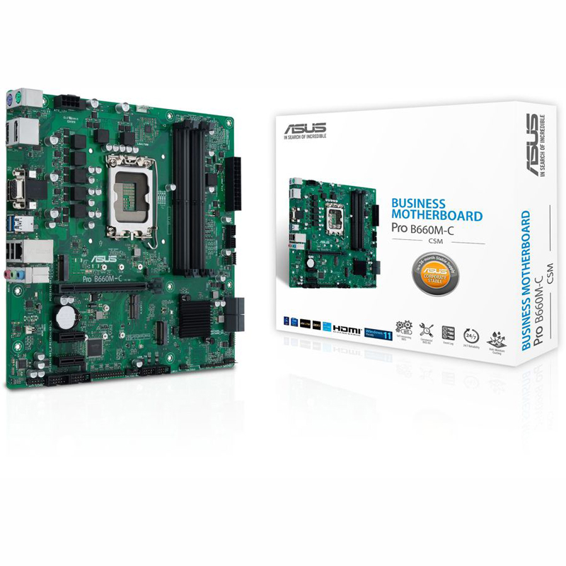 Материнская плата Asus - PRO B660M-C-CSM, mATX, Intel B660, 1xLGA 1700, 4xDIMM DDR5 до 128ГБ, 1x1GbE, audio, M.2, DP, HDMI, VGA, 2xPS/2, 4xSATA, 2xUSB2.0, 2xUSB3.2, PRO B660M-C-CSM