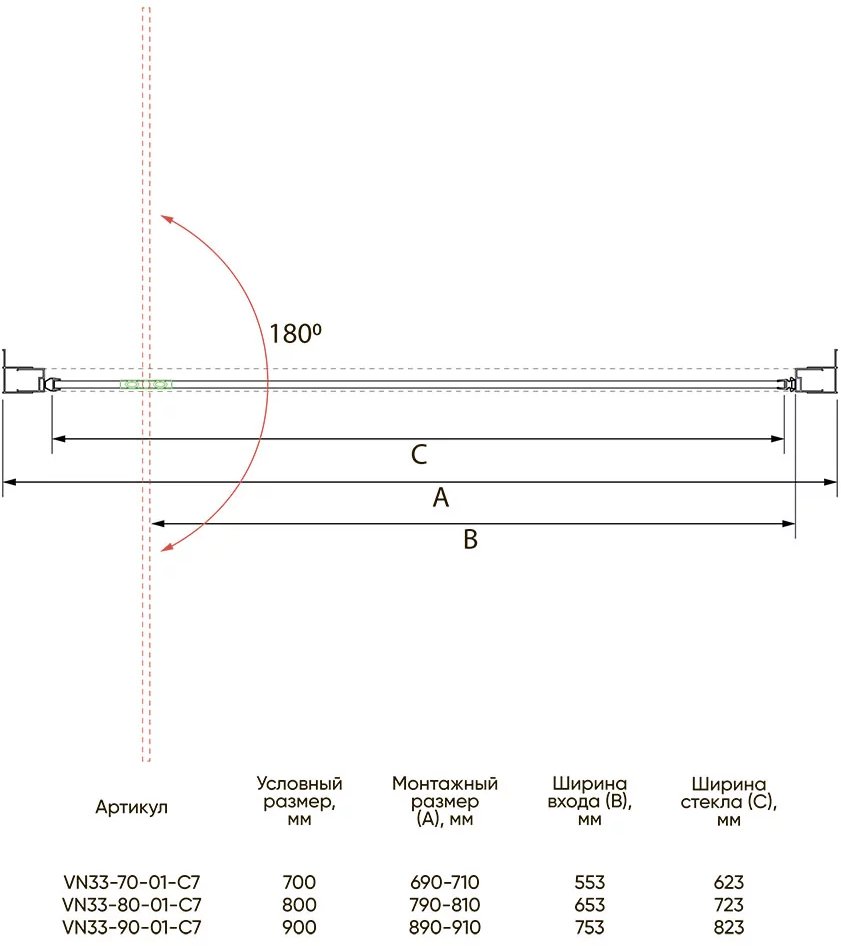 душевая дверь veconi vn33-90-01-c7 90x195 стекло прозрачное, профиль хром