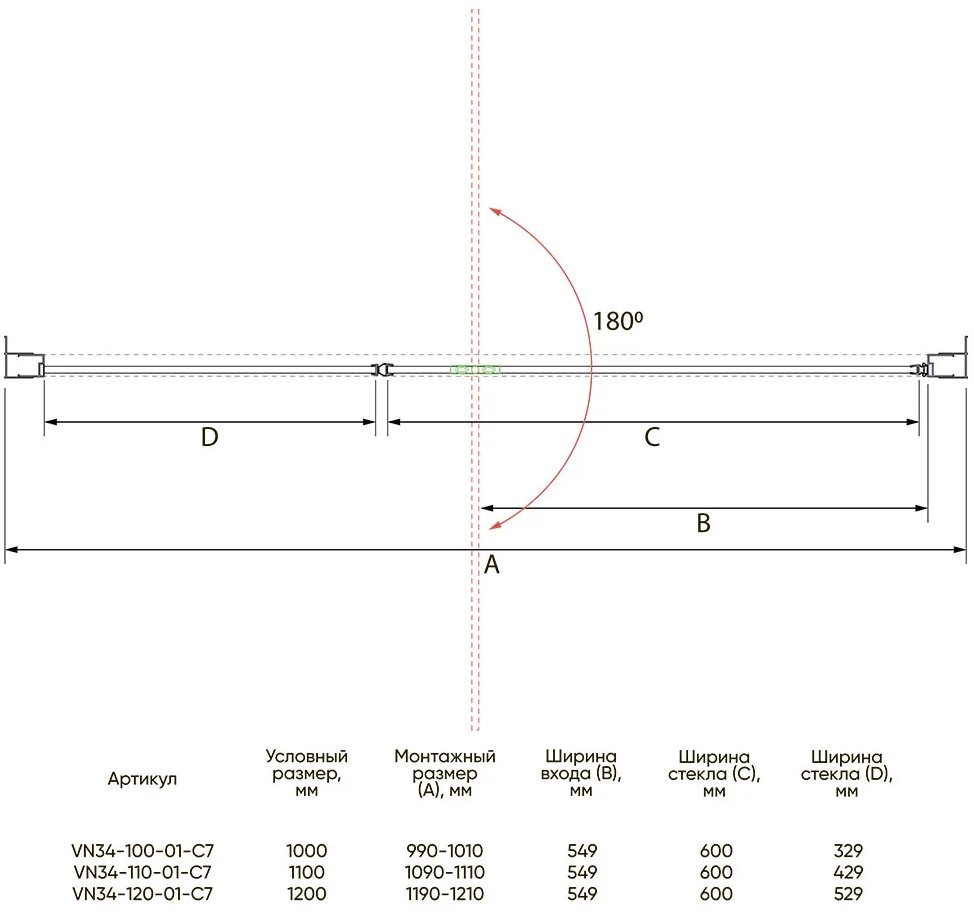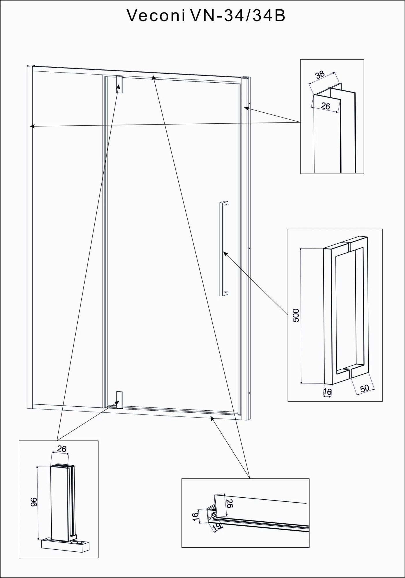 душевая дверь veconi vn34-120-01-c7 120x195 стекла прозрачные, профиль хром