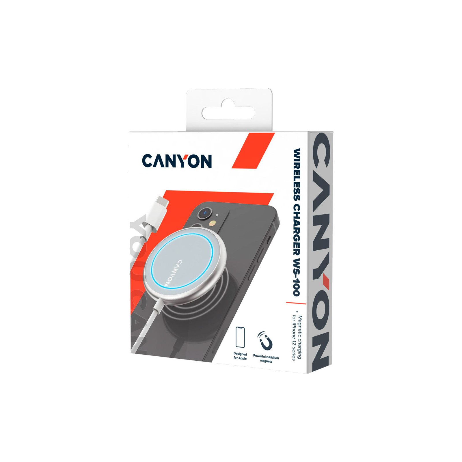 Бездротовий зарядний пристрій Canyon WS-100 для Apple iPhone займає мінімум місця й забезпечує зручне заряджання. Вбудовані рубідієві магніти призначені для фіксації смартфонів лінійки iPhone 12, що забезпечує максимально точне сполучення й найбільшу швидкість заряджання. Ви зможете легко заряджати й інші мобільні пристрої, що підтримують стандарт Qi. Тонкий корпус, якісні матеріали та нейтральний, приємний відтінок потішать шанувальників стильних ґаджетів. Ідеальний дизайн для шанувальників екосистеми Apple!Для оптимальної ефективності заряджання рекомендується використовувати адаптер живлення PD18W (до комплекту не входить).Функція заряджання підходить для більшості пристроїв із підтримкою QI (смартфонів, навушників TWS)Магнітна зарядка тільки для iPhone 12, iPhone 12 mini, iPhone 12 Pro, iPhone 12 Pro Max