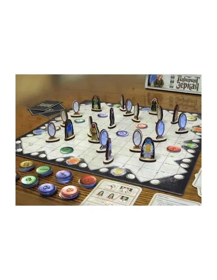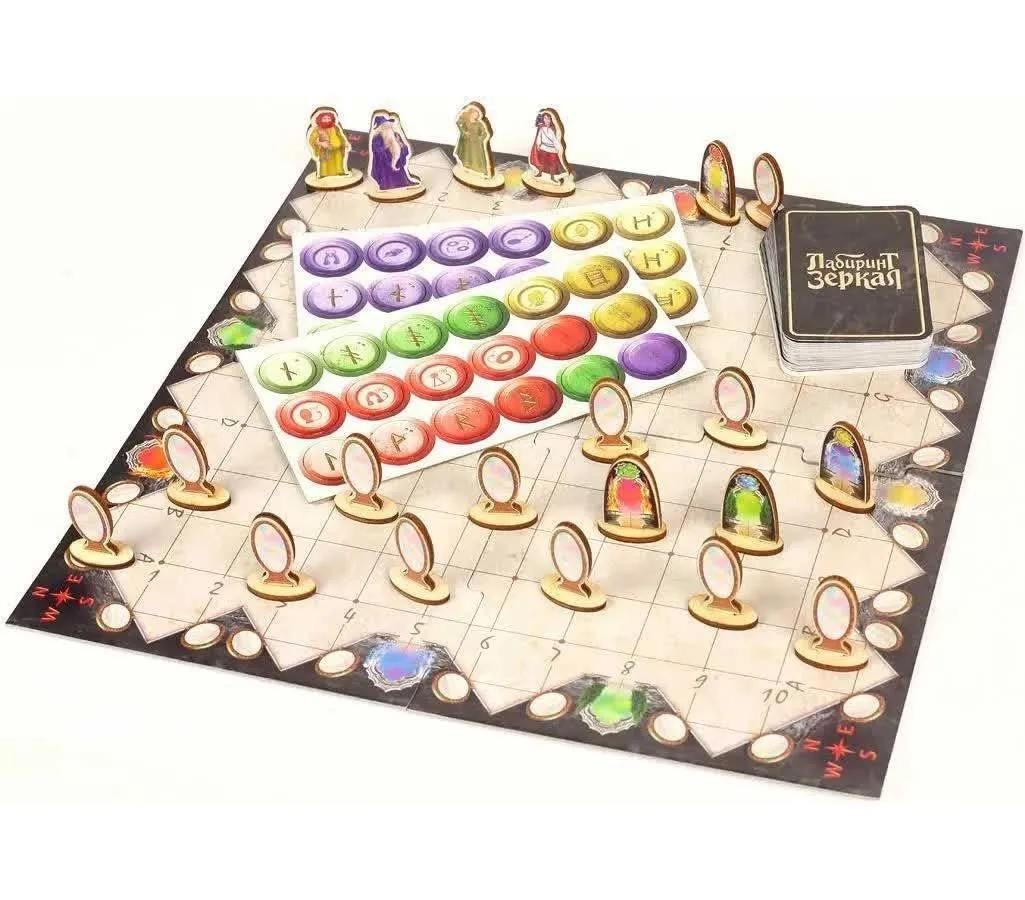 Лабиринт зеркал задействует такие качества, как логическое мышление, продумывание шагов наперед, расчетливость. Да, это все потребуется для того, чтобы принимать правильное решение, ведь продумывать свой ход, необходимо ориентируясь на установленные порталы, линии и действия других игроков, что в большинстве случае заставляет призадуматься. Семейное приключение В данной игре мы решили уделить отдельное внимание игровым компонентам – здесь они выполнены из натурального дерева, поверх которого наносится лазерная гравировка. Это не какой-нибудь картон, а именно – прочный и долговечный материал, который прослужит очень долгое время и совершенно не боится транспортировки