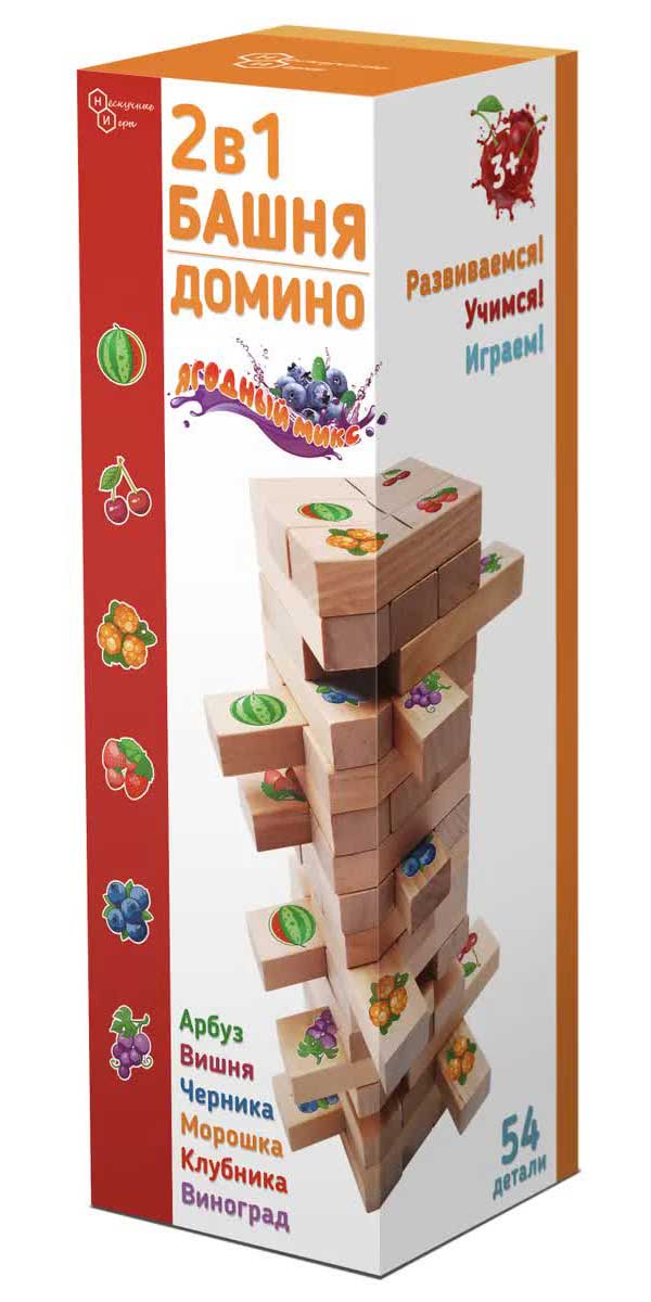 Описание товара Настольная игра Нескучные игры Башня+Домино 2 в 1 "Ягодный микс" 8400