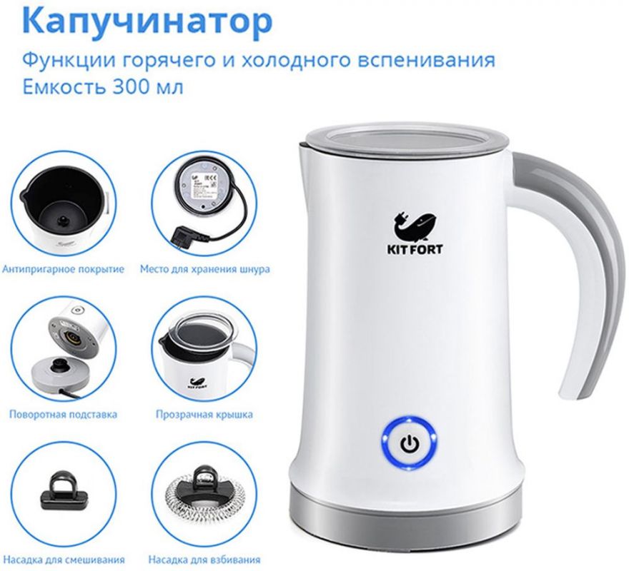 ОписаниеГорячее и холодное вспенивание. Емкость 300 мл. Насадки для взбивания и смешивания. Мощность 450 Вт. Длина шнура 75 см. Автоматическое отключение. Размер 165х115х183 мм. Вес 0,7 кг.