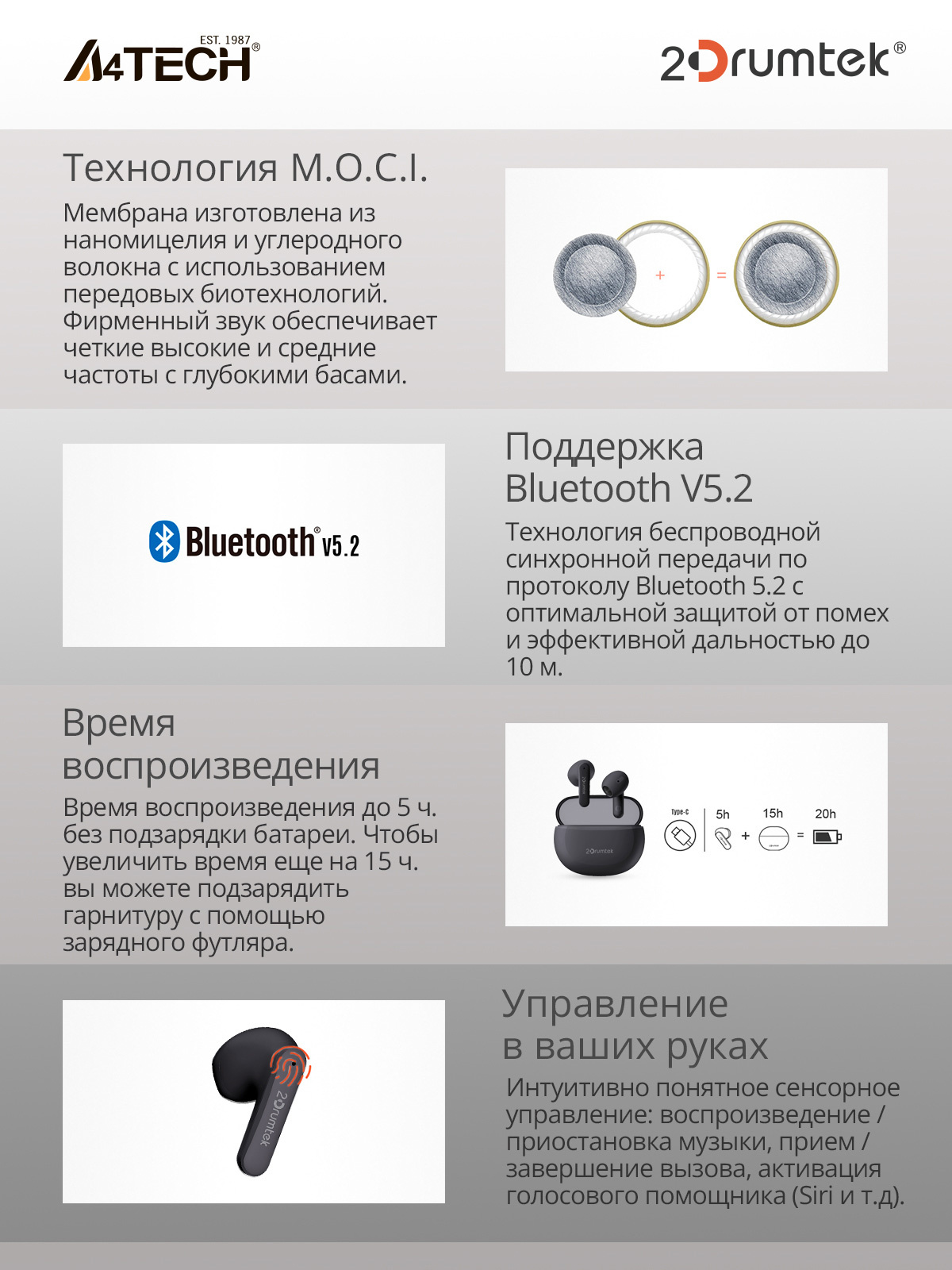 ОсобенностиГибридная мембрана. Быстрое сопряжение. Наушники работают независимо друг от друга и одновременно передают звук без задержек. Влагозащита (IPX4). Идеально подходят для тех, кто ведет активный образ жизни.