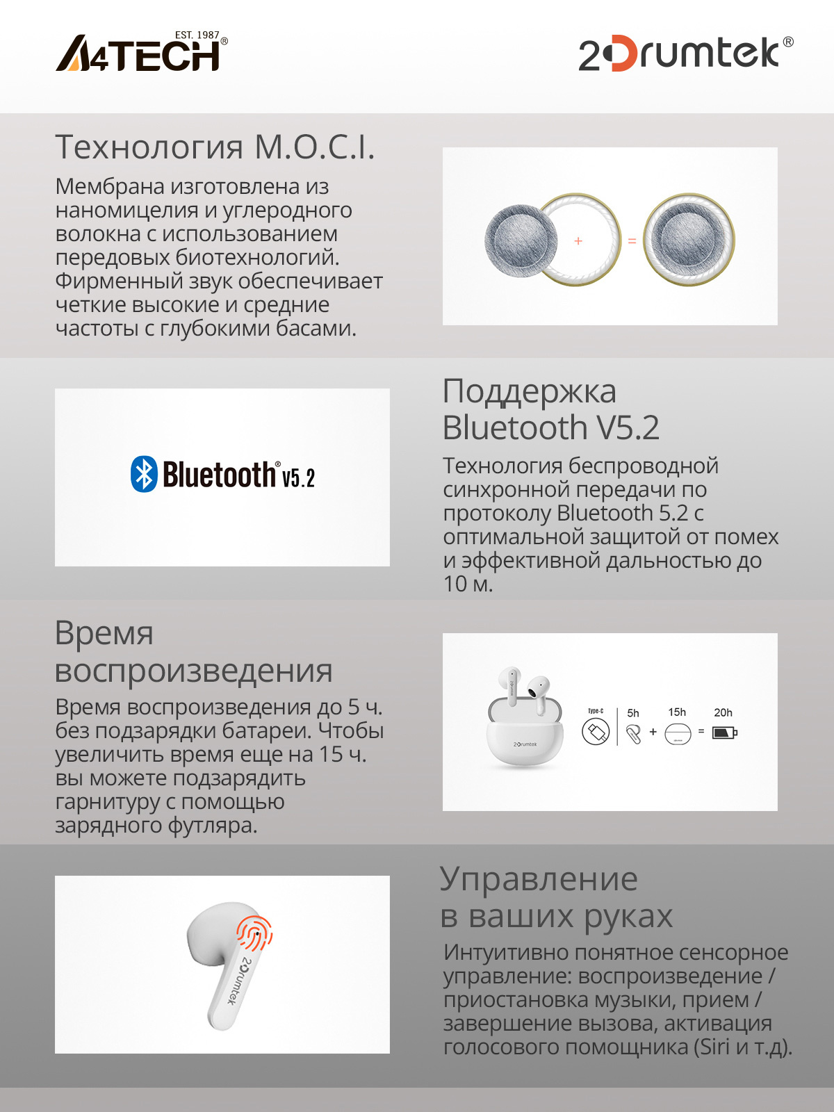 ОсобенностиГибридная мембрана. Быстрое сопряжение. Наушники работают независимо друг от друга и одновременно передают звук без задержек. Влагозащита (IPX4). Идеально подходят для тех, кто ведет активный образ жизни.