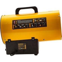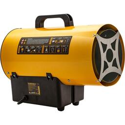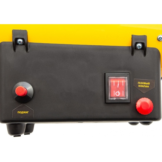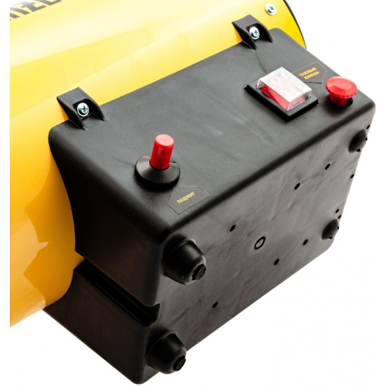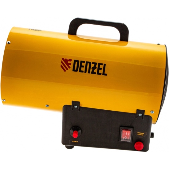 Газовая тепловая пушка DENZEL 96477, GHG-15, 15 кВт, 500 м3/ч, пропан-бутанГазовая тепловая пушка Denzel GHG-15 имеет тепловую мощность 15 кВт и применяется для работы в мастерских, гаражах, строящихся объектах, а также нашли особую популярность при установке натяжных потолков.Тепловая пушка отличается высокой производительностью 500 м3/ч при экономичном расходе топлива 1,0 кг/ч и компактных габаритах.ПреимуществаЗащита от перегрева. В случае перегрева подача газа автоматически прекращается, что предотвращает развитие аварийной ситуации и возникновение пожара.Пьезоподжиг позволяет быстро и безопасно запустить теплогенератор.Корпус из листовой стали окрашен термостойкой краской и устойчив к возникновению коррозии.Передняя решетка из нержавеющей стали рассчитана на долгий срок службы.Задняя решетка не допускает попадание посторонних предметов внутрь пушки, защищая ее от поломок.Выключатель электропитания закрыт защитным кожухом, который не допускает попадания пыли и влаги к внутренним частям.Газовый шланг с редуктором и сетевая вилка входят в комплект поставки.Ручка на верхней части корпуса и небольшой вес 3,8,кг делают удобной транспортировку пушки и ее погрузку в машину.Широкая платформа придает тепловой пушке устойчивость.Яркий дизайн.