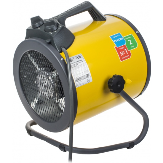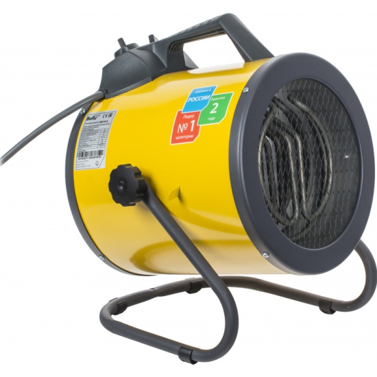 Электрическая тепловая пушка BНР-P2-5Тепловые пушки серии Prorab 2 – это профессиональные тепловые пушки направленного нагрева в круглом корпусе. Модельный ряд круглых пушек Ballu Prorab 2 представлен моделями мощностью 3, 5 и 15 кВт. Пушка выполнена в двойном корпусе из нержавеющей стали, с возможностью регулирования угла наклона с помощью барашковых винтов без использования инструмента. У пушек данной серии появилась возможность настенной установки, что экономит пространство на полу в небольших помещениях, не мешается и не поднимает пыль с пола.За счет универсальной ручки-подставки тепловая пушка легко перемещается и устанавливается.В качестве нагревательного элемента используется ТЭН из нержавеющей стали. Корпус специально обработан для предотвращения коррозии. Тепловые пушки имеют режимы защиты от перегрева и от поражения электрическим током.ПрименениеСтроящиеся объекты и помещения в процессе ремонта, производственные цеха, ангары, склады, базы, мастерские и подсобные помещения, гаражи, павильоны и др.ПреимуществаКомпактные размеры и легкий вес;Надежные ТЭНы из нержавеющей стали;Задержка выключения двигателя для безопасного охлаждения ТЭНов (модель на 9 кВт);Антикоррозийная обработка и прочное полимерное покрытие корпуса;Внутренний тепловой экран, уменьшающий температуру корпуса (в моделях от 5 кВт);Упругие опорные ножки, исключающие появление шума от вибрации;Встроенный термостат для защиты от перегрева;Две ступени мощности и режим вентиляции без нагрева.Технические характеристикиНапряжение питания, В 220Частота тока, Гц 50Максимальный ток по одной фазе, А 21Потребляемая мощность в режиме вентиляции, кВт 0,038Потребляемая мощность в режиме 1, кВт 1,5Потребляемая мощность в режиме 2, кВт 3,0Потребляемая мощность в режиме 3, кВт 4,5Производительность вентилятора, м3/час 400Увеличение температуры воздуха на выходе, °С 34Продолжительность работы, ч, не более 24Продолжительность паузы, ч, не менее 2Степень защиты оболочки IP20Класс электрозащиты I классГабаритные размеры прибора, мм (Г*В*Ш) 300х400х340Габаритные размеры упаковки, мм 345х315х305Масса нетто, кг 5,9Масса брутто, кг 6,6