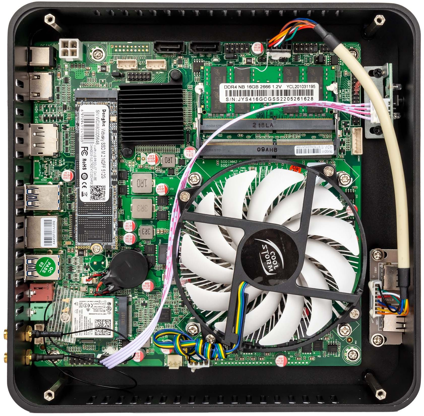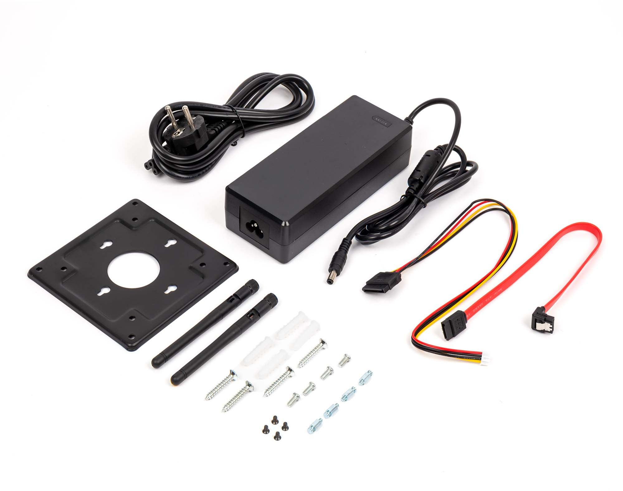 • Комплектация Мини ПК/блок питания/кабели SATA/антенны WiFi/адаптер VESA/гарантийный талон