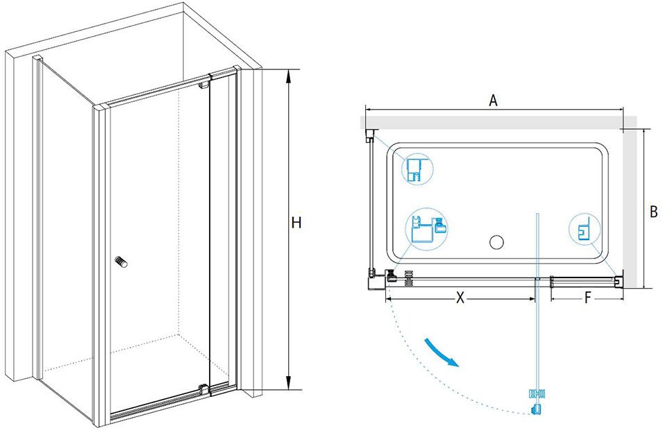 Тип кабины - Прямоугольный душевой уголок для монтажа в угол