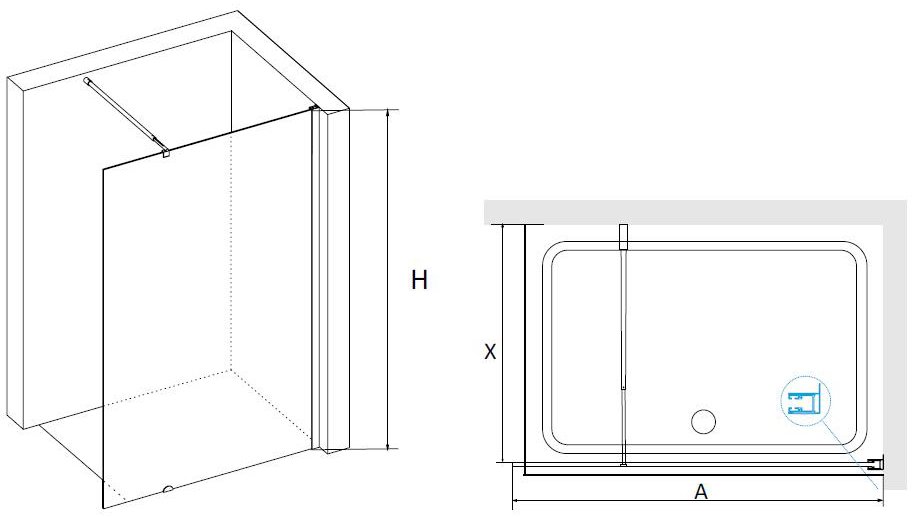 Тип кабины - Открытый душевой уголок для монтажа в угол