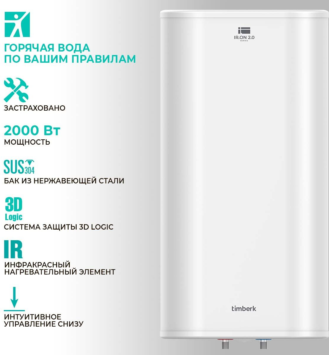 ОсобенностиИнфракрасный нагревательный элемент в колбе из жаропрочного стекла. Трехфакторная система защиты водонагревателя от протечки, утечки электрического тока и перегрева.