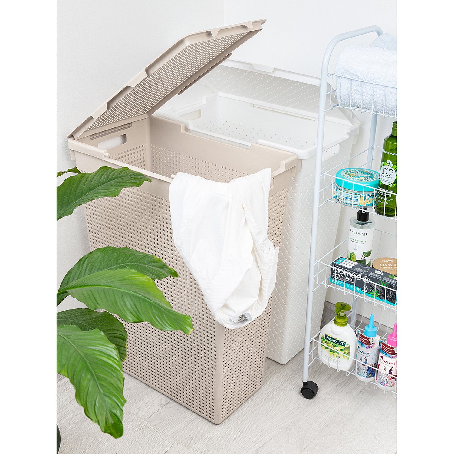 Корзина для белья El Casa 50 л 45х26х61.5 см Лофт с крышкой. белая. узкая 811957