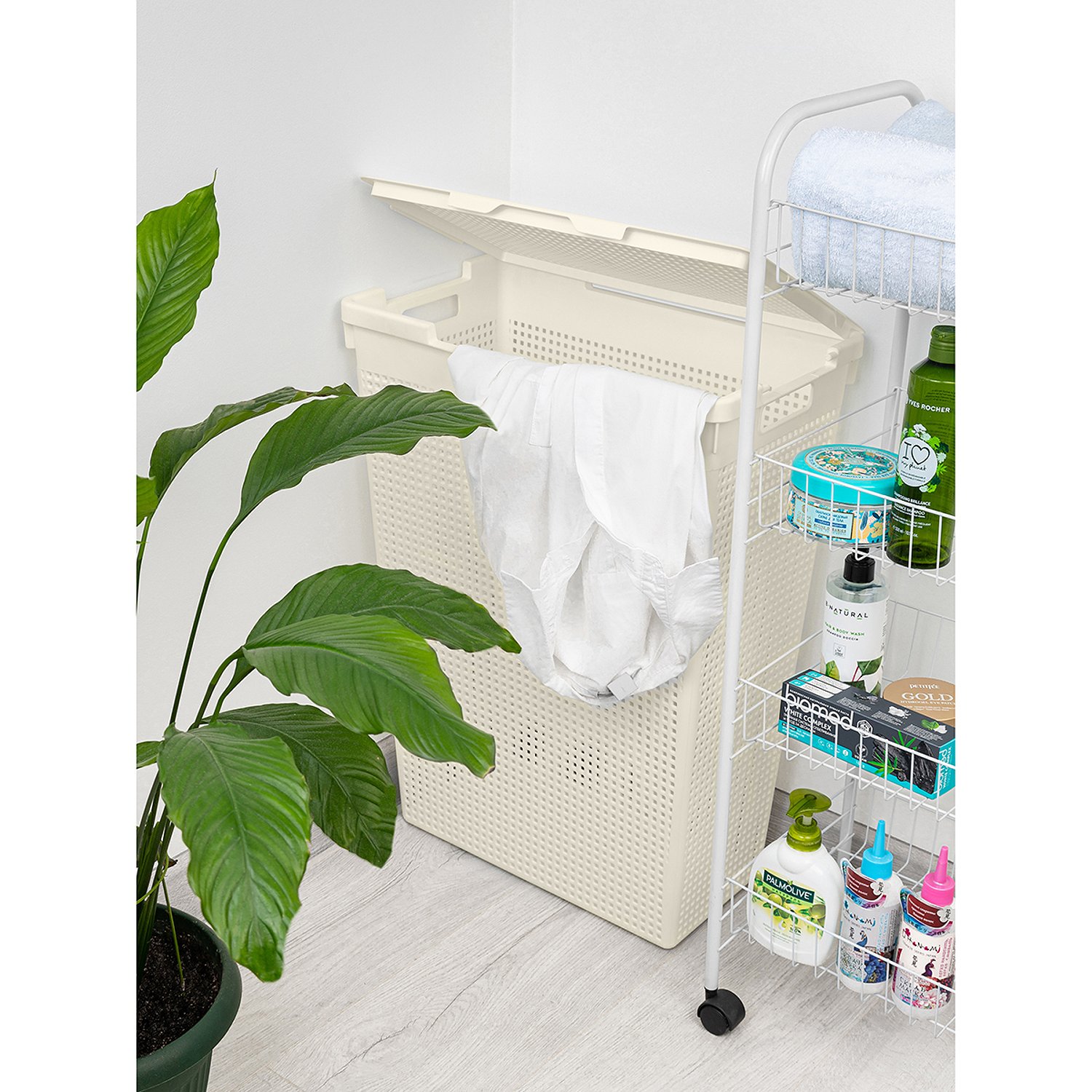 Корзина для белья El Casa 50 л 45х26х61.5 см Лофт с крышкой. слоновая кость. узкая 811980