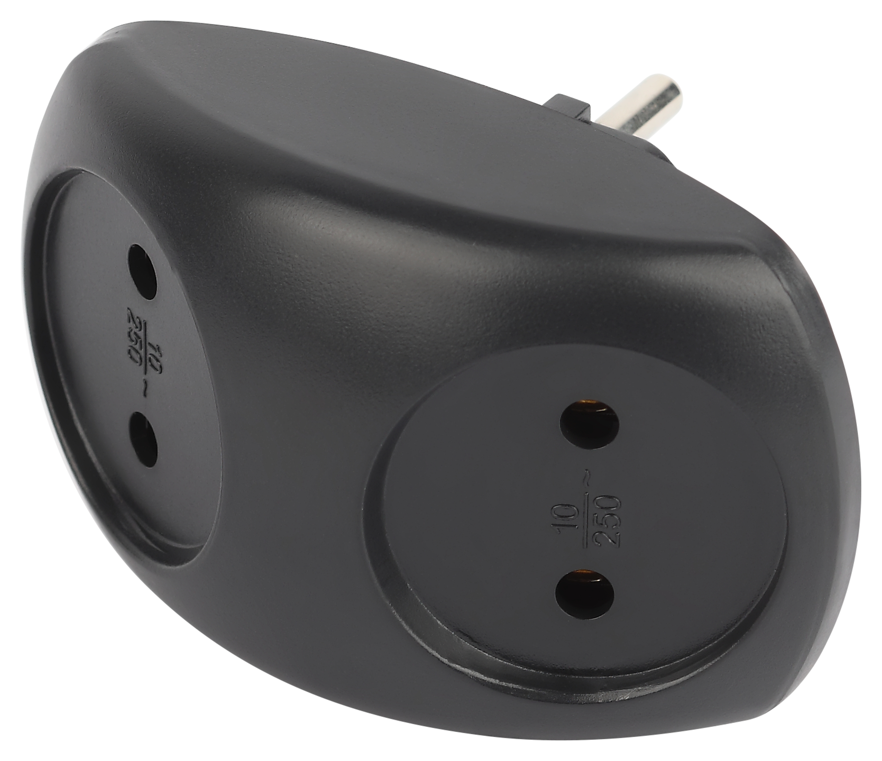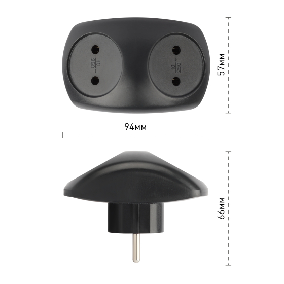 Разветвитель электрический ЭРА SPx-2-B на 2 розетки без заземления 10А черныйКод товара: Б0059720