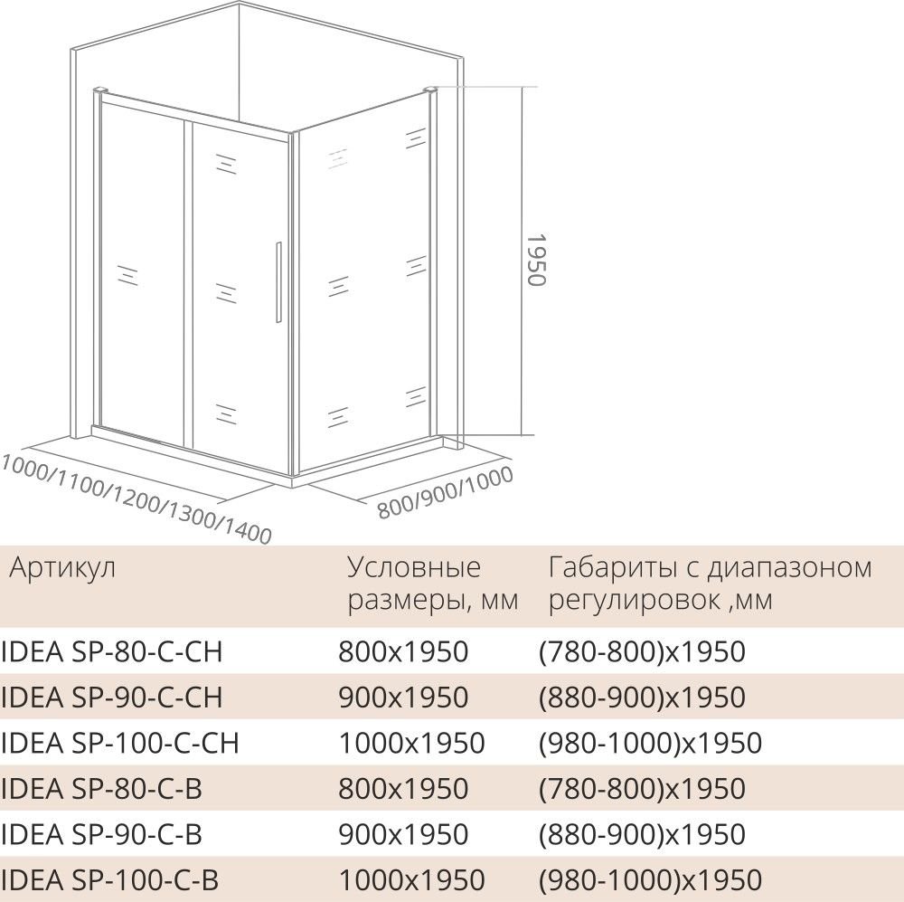 Состоит из душевой двери IDEA WTW-140-C-CH и боковой части IDEA SP-90-C-CH.