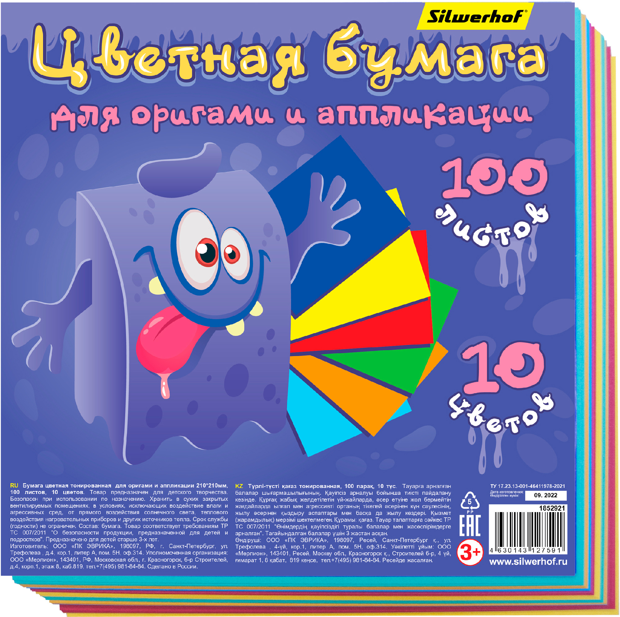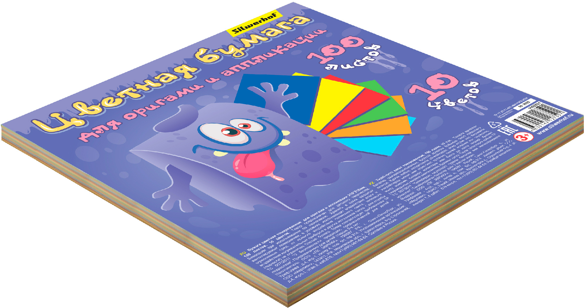 Бумага цветная Silwerhof для оригами и аппликации ассорти тонир. 100л. 10цв. Монстрики 80г/м2 210х210мм