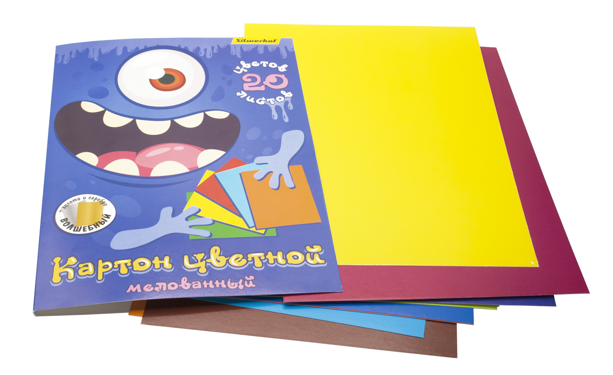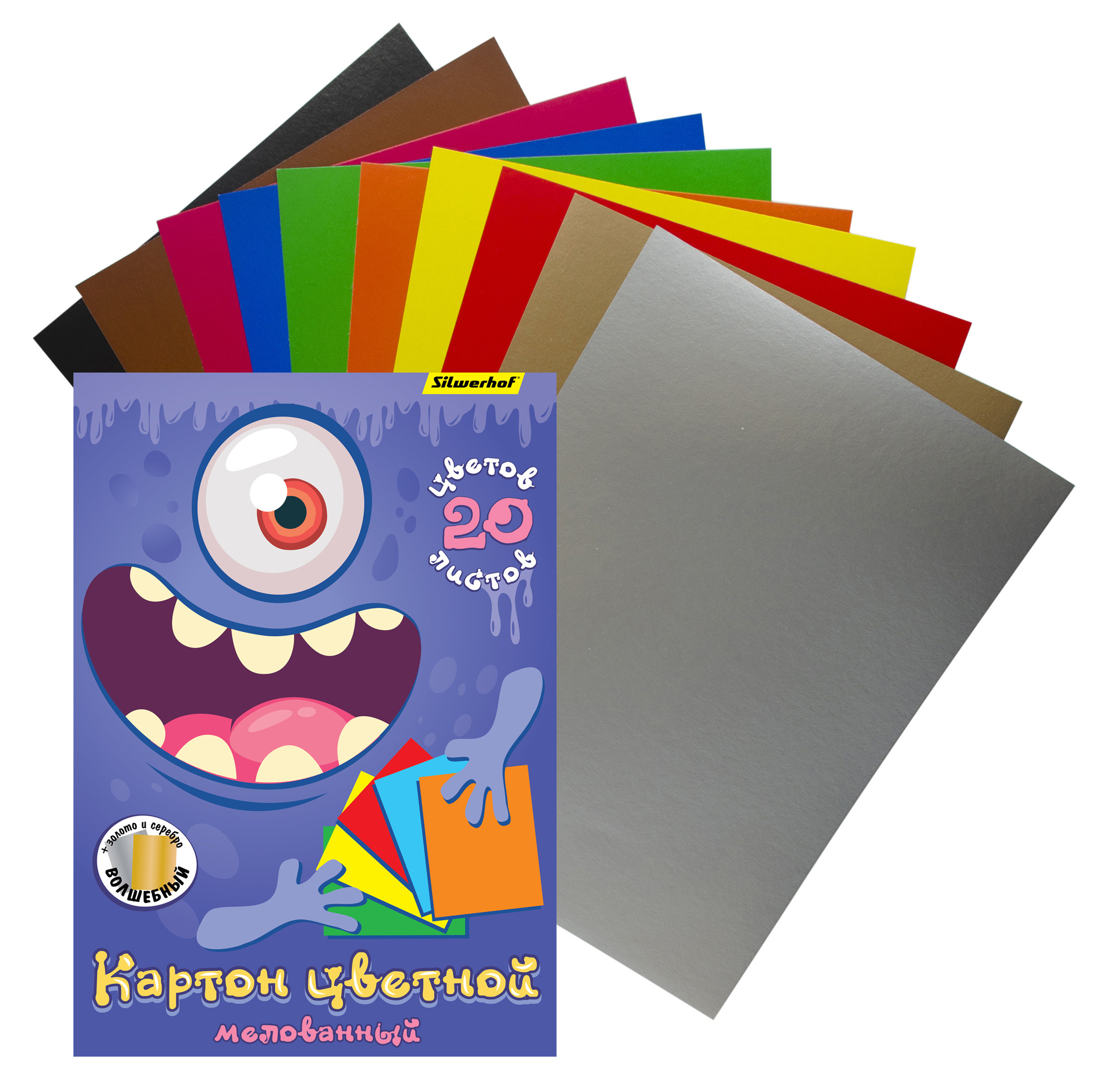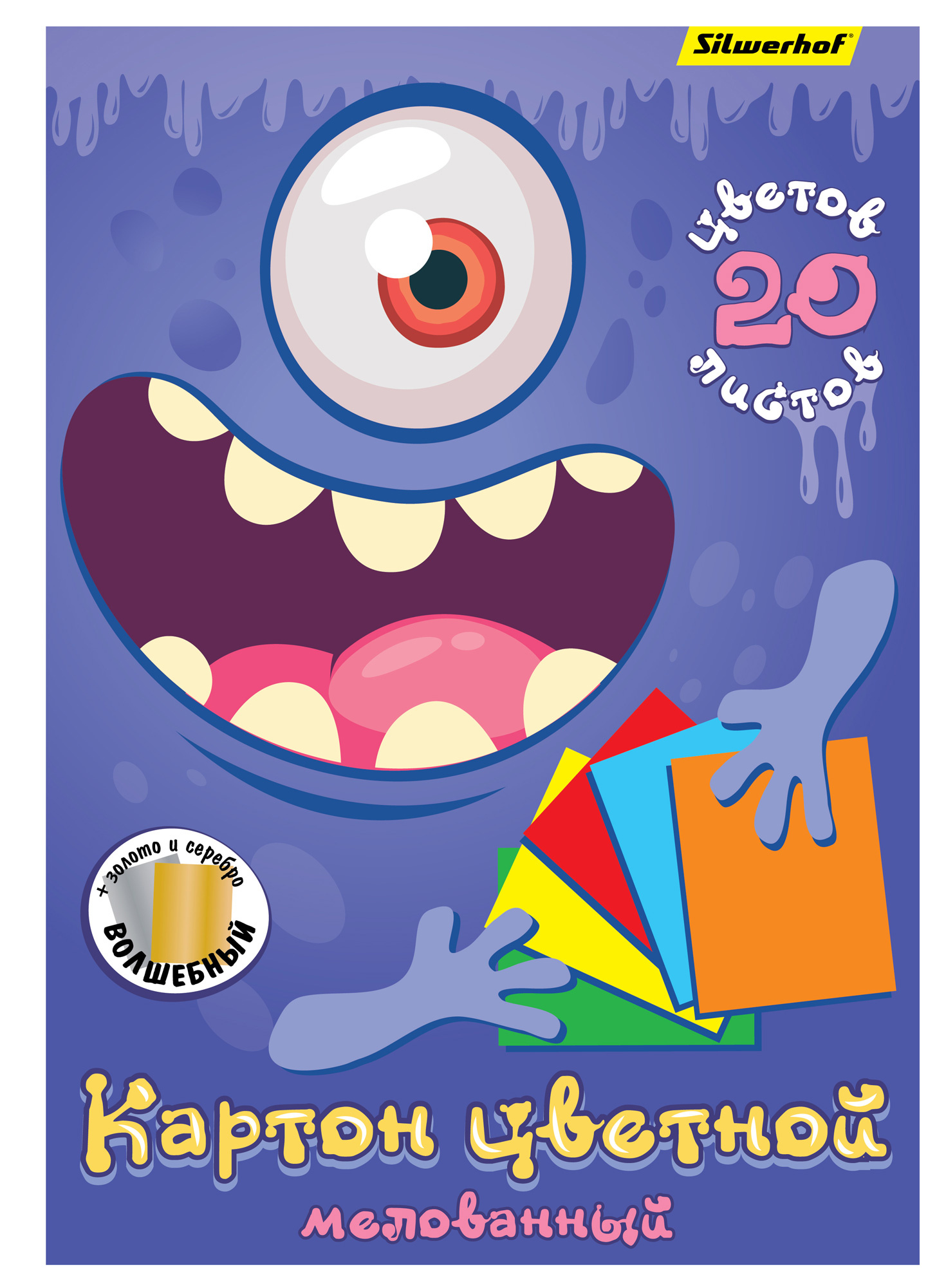 Картон цветной Silwerhof мелов. 20л. 20цв. A4 Монстрики папка