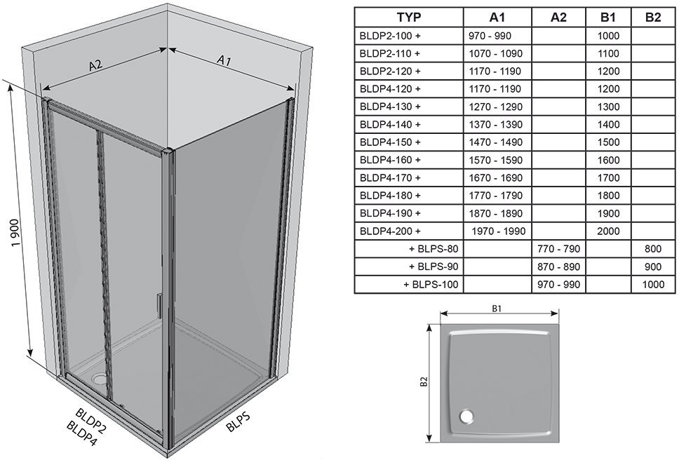 душевой уголок ravak blix bldp2+blps 110x90 стекла прозрачные, профиль белый