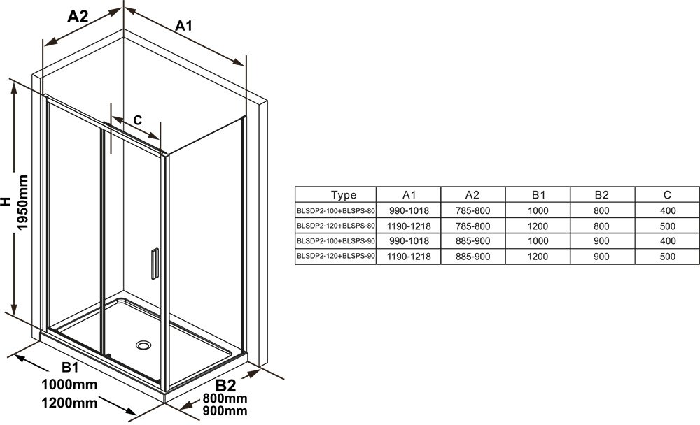 душевой уголок ravak blix slim blsdp2+blsps 120x90 стекла прозрачные, профиль серебристый