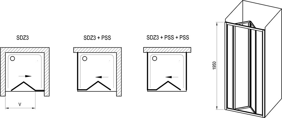 Душевой уголок Ravak Supernova SDZ3+PSS 90x80 стекла прозрачные, профиль белый